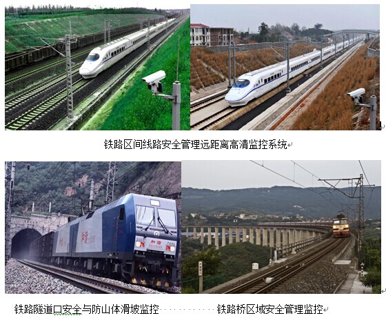 系統(tǒng)具有全天候、跟蹤速度快、覆蓋面廣、作用距離遠、圖像穩(wěn)定清晰的特點,能為高速鐵路安全運營管理、鐵路路況、突發(fā)事故、山體滑坡、橋區(qū)安全、隧道安全、機車安全、行車安全控制提供裝備技術(shù)上的強有力支持。